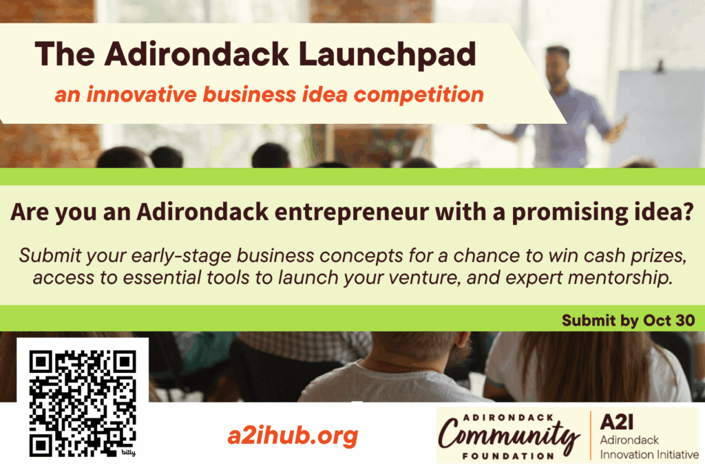 The Adirondack Community Foundation has launched the Adirondack Launchpad Business Idea Competition. Entrepreneurs with promising early-stage ideas are encouraged to submit their concepts for a chance to win cash prizes, gain access to essential startup tools, and receive expert mentorship. For more information, check out the flyer or visit adkcommunityfoundation.org.